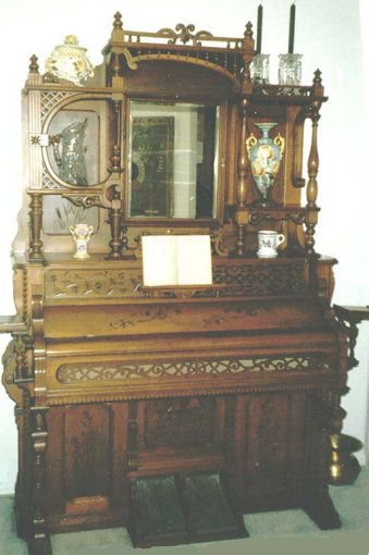 HIGH TOP HAS ASYMETRICAL SHELVES AND STORAGE BEHIND MIRROR, Located in Colorado. Rebuilt in 1998 by Smith Piano Service. Repair work with original paper registration.